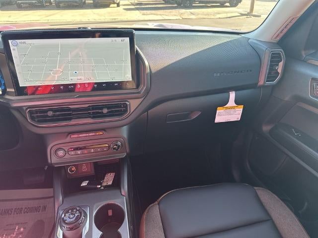 Located halfway between Dallas, and Oklahoma City, Woody Ford has been in Madill, OK since 1920. We are just 20 miles east of Ardmore, and 30 miles west of Durant. Let us make buying a new or used vehicle a hassle-free experience. Always here to serve, that's the Woody Ford way! Open 24/7/365 at www.woodyford.com Woody Ford Madill is very proud to offer this wonderful-looking 2025 Ford Bronco Sport Outer Banks in Ruby Red Metallic with Ebony/Roast interior well equipped with Equipment Group 300A, Outer Banks Tech Package+ (B&O Sound System by Bang & Olufsen, Connected Navigation, and HD Radio), 360-Degree Camera w/Trail & Split View, 4-Wheel Disc Brakes, 6 Speakers, ABS brakes, Air Conditioning, Alloy wheels, AM/FM radio: SiriusXM, AM/FM Stereo, Auto High-beam Headlights, Auto-dimming Rear-View mirror, Automatic temperature control, Brake assist, Compass, Delay-off headlights, Driver door bin, Driver vanity mirror, Dual front impact airbags, Dual front side impact airbags, Electronic Stability Control, Emergency communication system: SYNC 4 911 Assist, Four wheel independent suspension, Front anti-roll bar, Front Bucket Seats, Front Center Armrest, Front Driver/Passenger Seat Back Map Pockets, Front dual zone A/C, Front fog lights, Front License Plate Bracket, Front Parking Sensors, Front reading lights, Fully automatic headlights, Garage door transmitter, Heated door mirrors, Heated front seats, Heated steering wheel, Illuminated entry, Knee airbag, Low tire pressure warning, Memory seat, Occupant sensing airbag, Outside temperature display, Overhead airbag, Overhead console, Panic alarm, Passenger door bin, Passenger vanity mirror, Power door mirrors, Power driver seat, Power passenger seat, Power steering, Power windows, Premium Trimmed Front Bucket Seats w/Ebony/Roast, Radio data system, Rain sensing wipers, Rear anti-roll bar, Rear Parking Sensors, Rear reading lights, Rear seat center armrest, Rear window defroster, Rear window wiper, Remote keyless entry, Reverse Brake Assist, Security system, SiriusXM, Speed control, Speed-sensing steering, Speed-Sensitive Wipers, Split folding rear seat, Steering wheel mounted audio controls, SYNC 4 w/Enhanced Voice Recognition, Tachometer, Telescoping steering wheel, Tilt steering wheel, Traction control, Trip computer, Variably intermittent wipers, and Wheels: 18" Ebony Black-Painted Aluminum. Price includes: $2000 - Retail Customer Cash. Exp. 03/31/2026