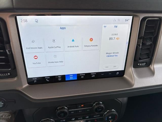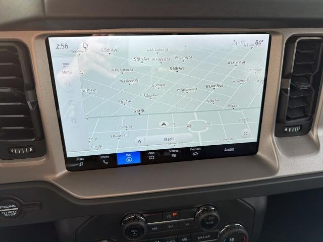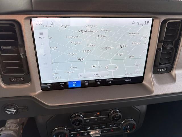 Located halfway between Dallas, and Oklahoma City, Woody Ford has been in Madill, OK since 1920. We are just 20 miles east of Ardmore, and 30 miles west of Durant. Let us make buying a new or used vehicle a hassle-free experience. Always here to serve, that's the Woody Ford way! Open 24/7/365 at www.woodyford.com Woody Ford Madill is honored to offer this stunning 2026 Ford Bronco Outer Banks in Desert Sand with Black Onyx interior well equipped with Equipment Group 312A Mid Package (18" Bright Machined Aluminum Wheels, 3.73 Axle Ratio, AM/FM Stereo, Connected Navigation, Heated Leather-Trimmed/Vinyl Bucket Seats, SiriusXM with 360L, and SYNC 4), Ford Connectivity Package (1-Year Included), 4-Wheel Disc Brakes, 7 Speakers, ABS brakes, Air Conditioning, Alloy wheels, AM/FM radio: SiriusXM with 360L, Auto High-beam Headlights, Auto-dimming Rear-View mirror, Automatic temperature control, Brake assist, Carbonized Gray Molded-in-Color Hard Top, Compass, Delay-off headlights, Driver door bin, Driver vanity mirror, Dual front impact airbags, Dual front side impact airbags, Electronic Stability Control, Emergency communication system: 911 Assist, Exterior Parking Camera Rear, Front anti-roll bar, Front Bucket Seats, Front Center Armrest, Front dual zone A/C, Front fog lights, Front License Plate Bracket, Front reading lights, Front wheel independent suspension, Fully automatic headlights, Hard Top Sound Deadening Headliner, Heated door mirrors, Heated front seats, Heated steering wheel, Illuminated entry, Integrated roll-over protection, Leather Shift Knob, Low tire pressure warning, Navigation system: Connected Navigation, Occupant sensing airbag, Outside temperature display, Overhead airbag, Overhead console, Panic alarm, Passenger door bin, Passenger vanity mirror, Power door mirrors, Power driver seat, Power passenger seat, Power steering, Power windows, Radio data system, Rear seat center armrest, Rear-Window Defroster and Washer, Remote keyless entry, Security system, Speed control, Split folding rear seat, Steering wheel mounted audio controls, Tachometer, Telescoping steering wheel, Tilt steering wheel, Traction control, Trip computer, Variably intermittent wipers, and Voltmeter.