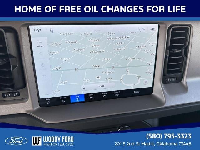Located halfway between Dallas, and Oklahoma City, Woody Ford has been in Madill, OK since 1920. We are just 20 miles east of Ardmore, and 30 miles west of Durant. Let us make buying a new or used vehicle a hassle-free experience. Always here to serve, that's the Woody Ford way! Open 24/7/365 at www.woodyford.com Woody Ford Madill is very proud to offer this fantastic 2026 Ford Bronco Outer Banks in Shadow Black with Black Onyx interior well equipped with Equipment Group 314A Lux Package (18" Bright Machined Aluminum Wheels, 3.73 Axle Ratio, 360-Degree Camera, Adaptive Cruise Control, Evasive Steering Assist, Front Parking Sensors, Heated Leather-Trimmed/Vinyl Bucket Seats, Information on Demand Panel, and Sideview Mirrors), Ford Connectivity Package (1-Year Included), 4-Wheel Disc Brakes, 7 Speakers, ABS brakes, Air Conditioning, Alloy wheels, AM/FM radio: SiriusXM with 360L, AM/FM Stereo, Auto High-beam Headlights, Auto-dimming Rear-View mirror, Automatic temperature control, Brake assist, Compass, Connected Navigation, Delay-off headlights, Driver door bin, Driver vanity mirror, Dual front impact airbags, Dual front side impact airbags, Electronic Stability Control, Emergency communication system: 911 Assist, Exterior Parking Camera Rear, Front anti-roll bar, Front Bucket Seats, Front Center Armrest, Front dual zone A/C, Front fog lights, Front License Plate Bracket, Front reading lights, Front wheel independent suspension, Fully automatic headlights, Hard Top Sound Deadening Headliner, Heated door mirrors, Heated front seats, Heated steering wheel, Illuminated entry, Integrated roll-over protection, Leather Shift Knob, Low tire pressure warning, Navigation system: Connected Navigation, Occupant sensing airbag, Outside temperature display, Overhead airbag, Overhead console, Panic alarm, Passenger door bin, Passenger vanity mirror, Power door mirrors, Power driver seat, Power passenger seat, Power steering, Power windows, Radio data system, Rear seat center armrest, Rear-Window Defroster and Washer, Remote keyless entry, Security system, Shadow Black-Painted Hard Top, SiriusXM with 360L, Speed control, Split folding rear seat, Steering wheel mounted audio controls, SYNC 4, Tachometer, Telescoping steering wheel, Tilt steering wheel, Traction control, Trip computer, Variably intermittent wipers, and Voltmeter. Price includes: $750 - Retail Customer Cash. Exp. 04/30/2026