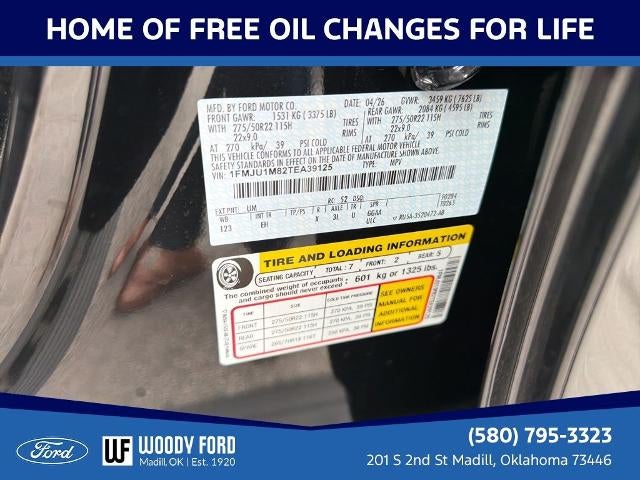 Located halfway between Dallas, and Oklahoma City, Woody Ford has been in Madill, OK since 1920. We are just 20 miles east of Ardmore, and 30 miles west of Durant. Let us make buying a new or used vehicle a hassle-free experience. Always here to serve, that's the Woody Ford way! Open 24/7/365 at www.woodyford.com Woody Ford Madill is pleased to offer this attractive 2026 Ford Expedition Platinum in Black with Black Onyx interior well equipped with Ford Connectivity Package (1-Year Included), 10 Speakers, 2nd Row Power-Folding Captain's Chairs, 3.73 Axle Ratio, 3rd row seats: split-bench, 4-Wheel Disc Brakes, ABS brakes, Air Conditioning, Alloy wheels, AM/FM radio: SiriusXM with 360L, Apple CarPlay/Android Auto, Auto High-beam Headlights, Auto-dimming door mirrors, Auto-dimming Rear-View mirror, Automatic temperature control, Brake assist, Bumpers: body-color, Compass, Delay-off headlights, Driver door bin, Driver vanity mirror, Dual front impact airbags, Dual front side impact airbags, Electronic Stability Control, Emergency communication system: 911 Assist, Exterior Parking Camera Rear, Ford Digital Experience, Four wheel independent suspension, Front anti-roll bar, Front Bucket Seats, Front Center Armrest, Front dual zone A/C, Front reading lights, Fully automatic headlights, Garage door transmitter, Genuine wood dashboard insert, Genuine wood door panel insert, Heated and Ventilated Leather Front Captain's Chairs, Heated door mirrors, Heated front seats, Heated rear seats, Heated steering wheel, Illuminated entry, Leather steering wheel, Low tire pressure warning, Memory seat, Navigation System, Occupant sensing airbag, Outside temperature display, Overhead airbag, Overhead console, Panic alarm, Passenger door bin, Passenger vanity mirror, Power door mirrors, Power driver seat, Power moonroof: Vista Roof, Power passenger seat, Power steering, Power windows, Radio data system, Radio: B&O Sound System by Bang and Olufsen, Rain sensing wipers, Rear air conditioning, Rear anti-roll bar, Rear reading lights, Rear window defroster, Rear window wiper, Reclining 3rd row seat, Remote keyless entry, Security system, SiriusXM with 360L, Speed control, Speed-sensing steering, Speed-Sensitive Wipers, Split folding rear seat, Spoiler, Steering wheel memory, Steering wheel mounted audio controls, Tachometer, Telescoping steering wheel, Tilt steering wheel, Traction control, Trip computer, Turn signal indicator mirrors, Variably intermittent wipers, Ventilated front seats, Voltmeter, and Wheels: 20" x 8.5" Ebony Bright Machined Aluminum.