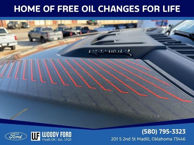 Located halfway between Dallas, and Oklahoma City, Woody Ford has been in Madill, OK since 1920. We are just 20 miles east of Ardmore, and 30 miles west of Durant. Let us make buying a new or used vehicle a hassle-free experience. Always here to serve, that's the Woody Ford way! Open 24/7/365 at www.woodyford.com Woody Ford Madill is pumped up to offer this great 2026 Ford F-150 Raptor in Green with Black interior well equipped with Equipment Group 801A Standard (17" Cast Aluminum Wheels, Electronic Locking with 4.10 Axle Ratio, Leather Trimmed Seats, Radio: B&O Unleashed Sound System by Bang & Olufsen, and SYNC 4 with Enhanced Voice Recognition), Ford Connectivity Package (1-Year Included), Internet access capable: 5G Modem - Ford Connectivity Package, 14 Speakers, 4-Wheel Disc Brakes, ABS brakes, Adjustable pedals, Air Conditioning, Alloy wheels, AM/FM radio: SiriusXM with 360L, Auto High-beam Headlights, Auto tilt-away steering wheel, Auto-dimming door mirrors, Auto-dimming Rear-View mirror, Automatic temperature control, Brake assist, Bumpers: body-color, Compass, Delay-off headlights, Driver door bin, Driver vanity mirror, Driver's Side SecuriCode Keyless-Entry Keypad, Dual front impact airbags, Dual front side impact airbags, Electronic Stability Control, Emergency communication system: SYNC 4 911 Assist, Front anti-roll bar, Front Bucket Seats, Front Center Armrest, Front dual zone A/C, Front fog lights, Front License Plate Bracket, Front reading lights, Front wheel independent suspension, Fully automatic headlights, Garage door transmitter, Heated door mirrors, Heated front seats, Heated rear seats, Heated steering wheel, Illuminated entry, Lane Departure Warning System, Leather steering wheel, Low tire pressure warning, Memory seat, Navigation system: Connected Navigation, Occupant sensing airbag, Outside temperature display, Overhead airbag, Overhead console, Panic alarm, Passenger door bin, Passenger vanity mirror, Pedal memory, Power door mirrors, Power driver seat, Power passenger seat, Power steering, Power windows, Radio data system, Rain sensing wipers, Rear reading lights, Rear step bumper, Rear window defroster, Remote keyless entry, Security system, Speed control, Speed-sensing steering, Split folding rear seat, Steering wheel memory, Steering wheel mounted audio controls, Tachometer, Telescoping steering wheel, Tilt steering wheel, Traction control, Trip computer, Turn signal indicator mirrors, Twin Panel Moonroof, Variably intermittent wipers, and Ventilated front seats.