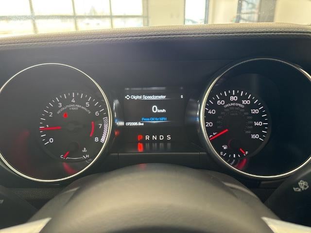 Step into the driver's seat and experience the Mustang's premium interior, featuring leather-wrapped steering wheel, shift knob, and a power convertible roof that allows you to savor the open-air thrill. The 18-inch machined-face aluminum wheels and rain-sensing wipers add a touch of sophistication, while the Auto High-beam Headlights and Rear Parking Sensors provide added confidence and convenience.